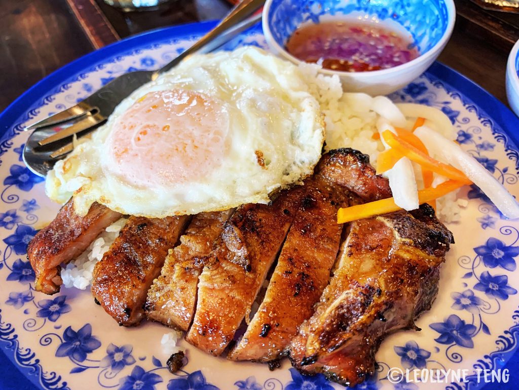 Cơm tấm in Vietnamese literally means broken rice or cooked rice from fractured rice grains. This broken rice dish comes served with a thin grilled pork chop, egg, pickled vegetables, and dipping fish sauce.Cơm gà is one of the signature dishes of Hoi An, a small ancient town in Central Vietnam. It features chicken tossed with Vietnamese coriander, onions, and lime juice dressing. The chicken is then served with turmeric rice cooked directly in chicken stock. So tasty and refreshing!