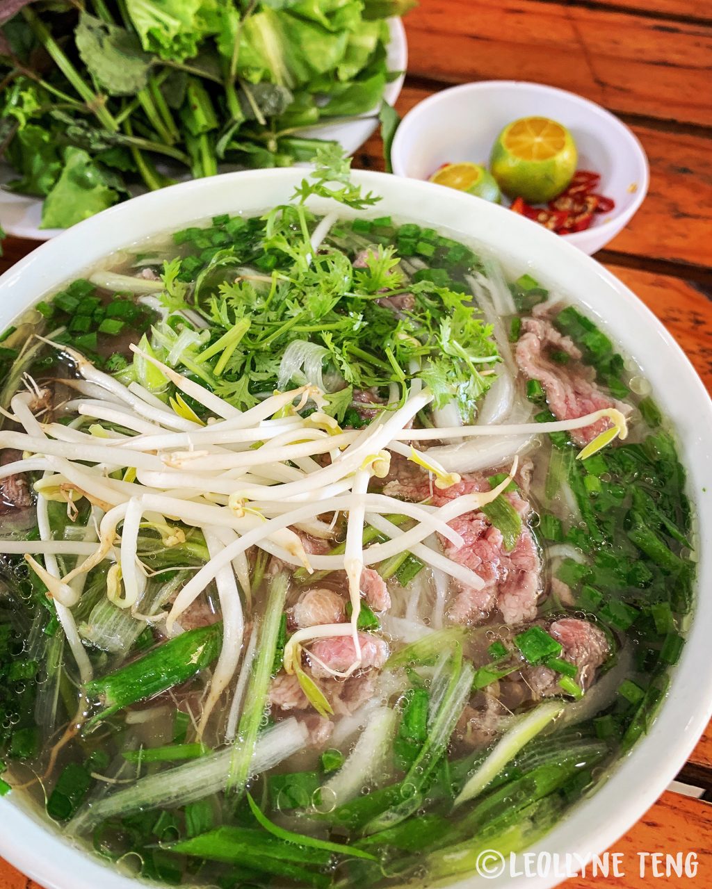 Pho Bo has got to be one of the most popular dishes in Vietnam. Our favorite is Pho Tai, in which the soup is garnished with thinly slices of raw beef that cook upon contact with the hot and steamy beef broth.