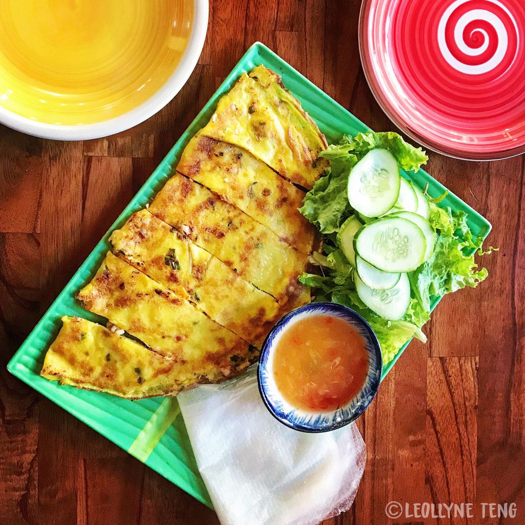 In Vietnamese cuisine, bánh bột chiên translate to fried rice flour cakes. This Chinese-influenced pastry exists in many forms all over Asia. The Vietnamese version features a special tangy soy sauce on the side, rice flour cubes with fried eggs, and some vegetables.