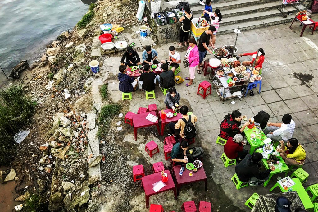 Sat on the opposite end of Nguyen Hue Walking Street to the City Hall building is the Saigon River. At the riverfront, visitors are treated to a range of local merchants who sell traditional snacks for visitors to feast on. Favourites such as Bánh Tráng Trộn and Bánh tráng nướng are available for those who want a scenic view while they enjoy their snacks.